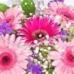 Нежный букет из розовых и малиновых гербер аккуратно оформлен статицей, гипсофилой и декоративной зеленью. Данная композиция будет прекрасным дополнением к подарку дорогой маме, сестре или подруге. Универсальный букет можно вручить как на день рождения, так и без особого повода.