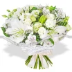 Воплощенная нежность и изящность букета, не может остаться незамеченной. Словно белое платье невесты, букет завораживает нежностью и невинностью.  Наполненный альстромериями, лилиями, эустомами и розами кристально – белых оттенков, он дарит ощущение невесомости и свободы, которое остается в глубине самого сердца.